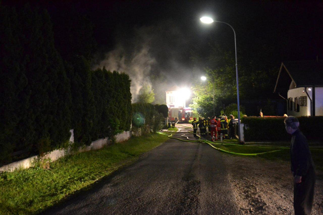 Es war um 02.41 Uhr in der Frühe, als die Alarmierung „B3 – Wohnhausbrand“ über die Bezirksalarmzentrale (BAZ) in Schwarzau am Steinfeld hinausging und die Kameraden der FF Küb sowie sechs weiterer Wehren aus ihren Betten holte.Der Spannungsumwandler einer Stehlampe im Wintergarten eines Einfamilienhauses in Küb-Mühlhof überhitzte und fing Feuer, welches sich rasch weiter auf das Vordach ausbreitete und in der dortigen Holzkonstruktion reichlich Nahrung fand. Eine Bewohnerin, auf einem lebensrettenden nächtlichen Toilettengang, hörte glücklicherweise das Knistern des sich ausbreitenden Feuers, weckt daraufhin die restliche Familie und alarmierte die Feuerwehr. Ebenso war mittlerweile ein zweiter Notruf eines aufmerksamen Nachbarn eingegangen.